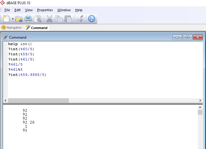 Tried some of the commands ?int(460/5) , ?int(459/5) , ?int(461/5)