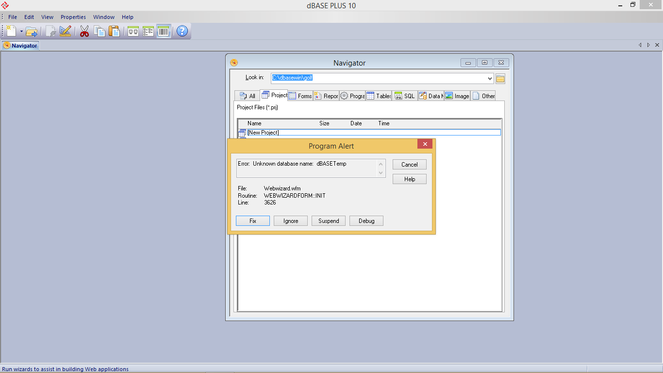 web wizard error |
