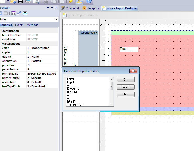 Please can anybody guide on this subject as how to make dBase 11.3 understand that for the printer chosen, its paper size is H= 4" and w=8.5"