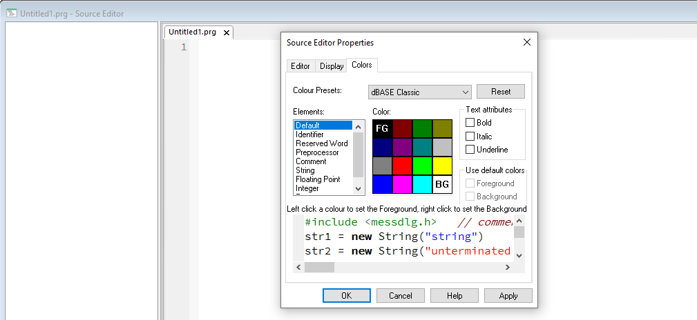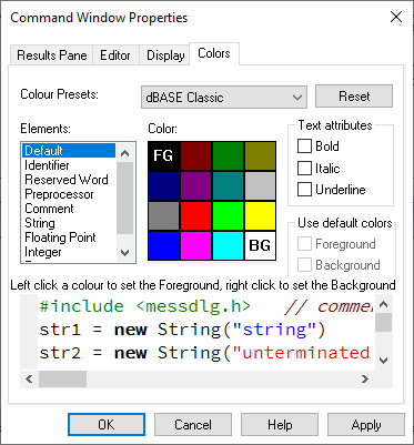 dBASE_SourceEditor_Properties.png, dBASE_CommandWindowProperties.png |