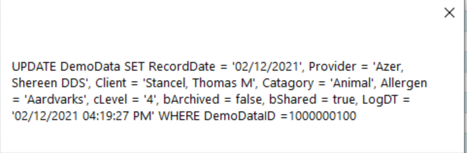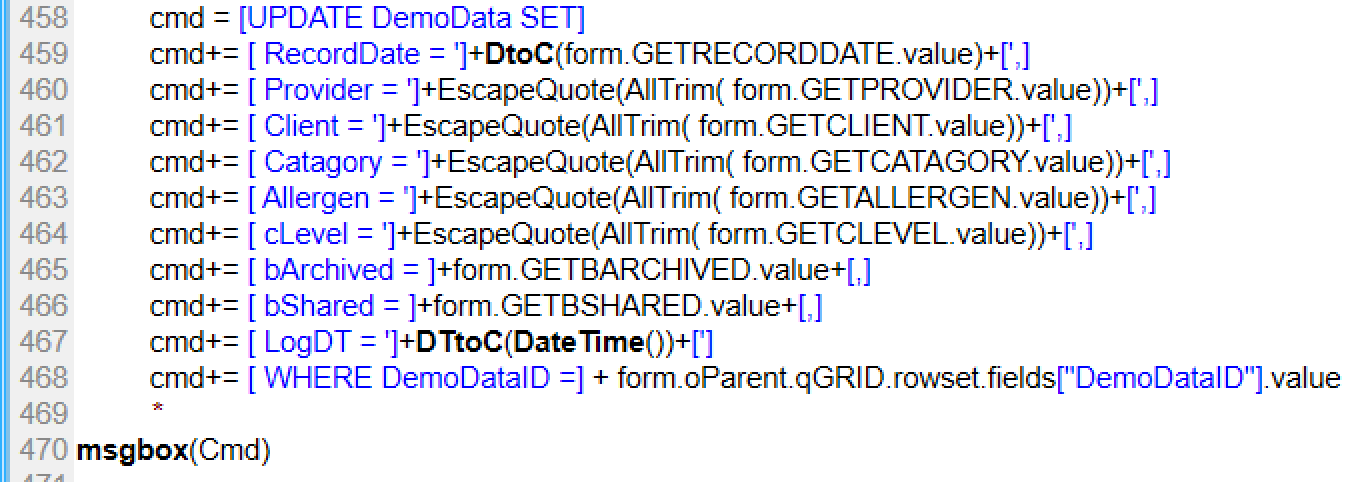>> Trying to do an 'Update' on a dBase 7 table and getting the attached