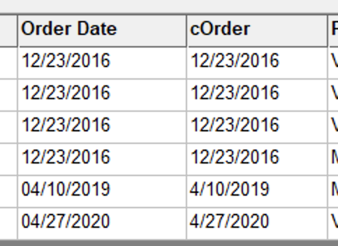 > cOrder fields. I normally use the YMD date format and the cast() field