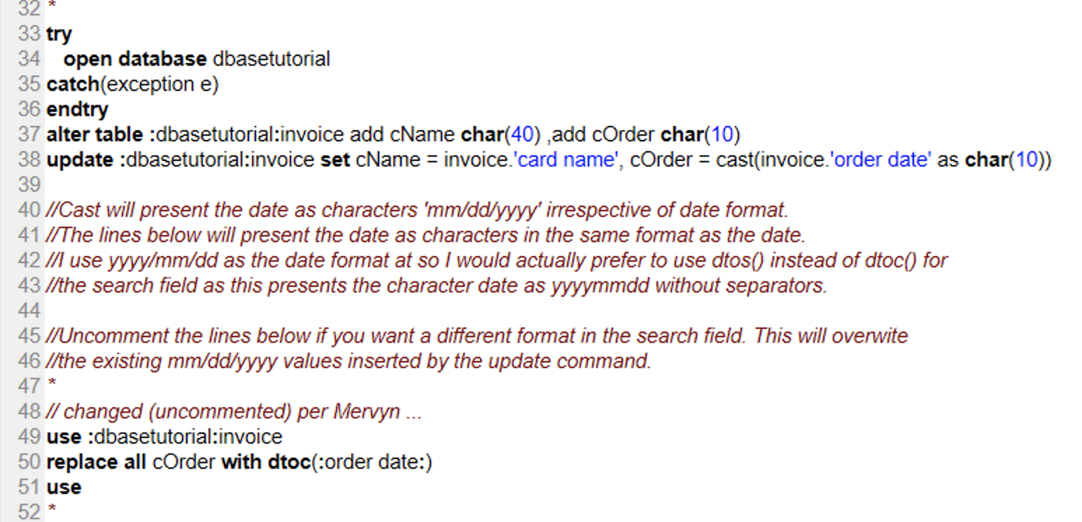 > like_search1.wfm and use DTOC() instead of cast() to populate the cOrder