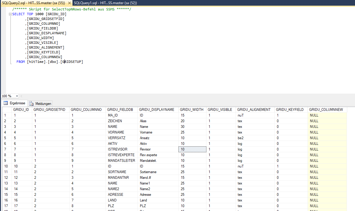 case ms sql). Also all fields must be registered with name, type and so