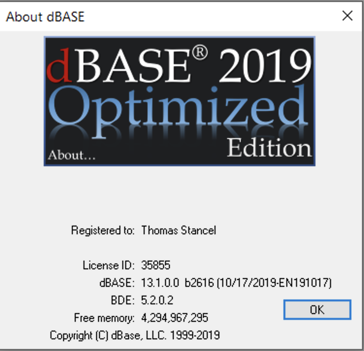 > What version of dBASE? I see no textLabel unless it is the downarrow on
