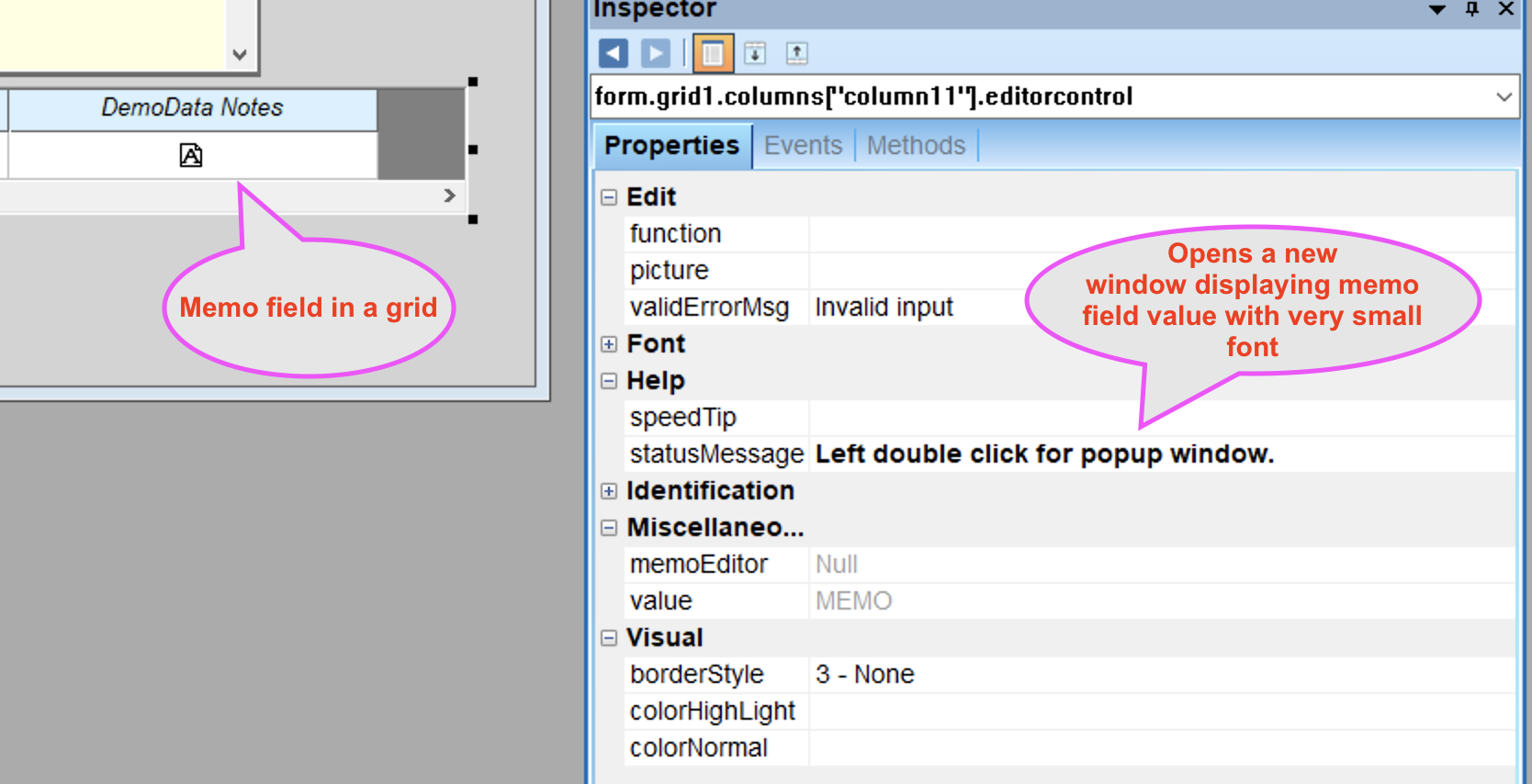 > a property "fontSize") using the Inspector. >