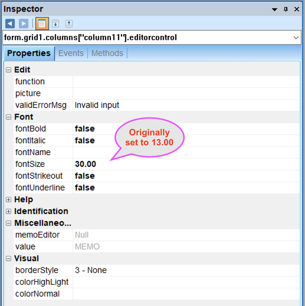 >> New picture more helpful? Changing the font size in the inspector has